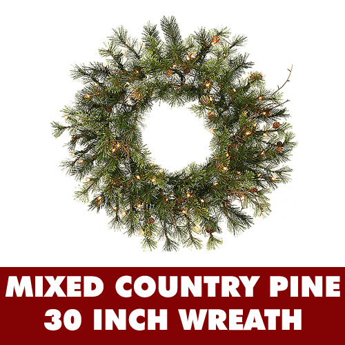 30 Inch Lighted Mixed Country Pine Artificial Christmas Wreath Clear Lights