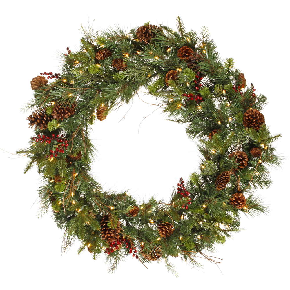 36 Inch Cibola Mixed Berry Wreath 100 DuraLit Clear Lights