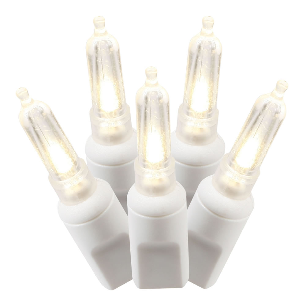 50 Commercial Grade LED Italian M5 Smooth Warm White Christmas Mini Light Set White Wire Polybag
